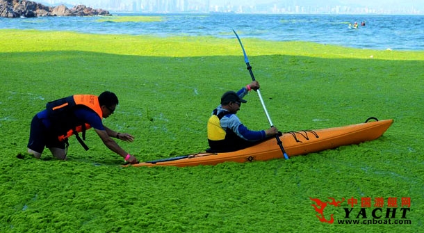 浒苔来袭 皮划艇如草原旱船