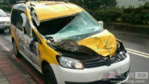 飞机机翼打到出租车,司机送医所幸无大碍。(图/网友提供)