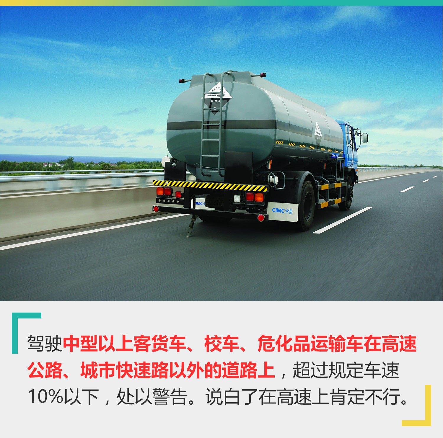 另外还有一种情况是,驾驶中型以上客货车、校车、危化品运输车在高速公路、城市快速路以外的道路上,超过规定车速10%以下的,只处以警告。而这句话里面的关键信息包括“中型以上客货车、校车、危化品运输车”和“高速公路、城市快速路以外”,那么我们翻译过来就是,您驾驶的虽然是中型以上客货车、校车、危化品运输车,但只有您在一般城市道路或公路上,如果超过规定车速10%以下,才不罚款不扣分,仅处以警告。