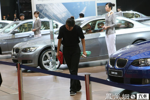 在车展上每位观众会被光鲜的汽车和漂亮的模特所吸引。但是另一群不被关注的人却是最值得我们尊敬的,他们就是清洁人员。让我们也给予他们更多的关注和尊重吧,因为他们是车展中最可爱的人。 |