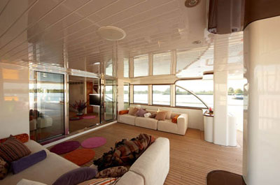 夏天马上要到了,向往海上生活的人们,跟着小编一起来看这艘内饰设计独特的游艇吧。 这艘124英尺长的游艇源自Moonen 120的设计,是Moonen船厂和Rene van der Velden合作设计制造的最大Displacement系列。 Moonen Displacement系列发展与2001年的Moonen 72 Lady Jalinka船型,后来通过Moonen84、Moonen 96等船型的进化,到现在Moonen 124则成为该系列最大的船型,也是Moonen的旗舰船型。 Moonen 124其独特设计,吸引了不少用户,而且也是包船度假或者私人购买使用的最理想船型。在第四层甲板设计为中央大堂是Moonen 124的独特展现,通过大堂内的旋转楼梯,可以贯通整艘游艇。大堂前部为主人套房设计,在主人套房甲板下层则为两个双连得客房,旋转楼梯的顶层部分则为船员宿舍。 另外Moonen 124的主甲板还包括按摩浴缸、超大观景活动阳台和救生艇存放的功能。下层也有极其宽敞的特等休息间,附近是游艇核心的机房。 Moonen 124的独特设计,使核心的中央大堂地区可以利用旋转楼梯直达观景露台,整个设计就像一个中庭式设计。同时顶部采用开放式天幕的设计,使阳光可以照入中庭,采光效果一流,是其他超级游艇罕见的设计。 Moonen拥有最高14.5海里的最高航速,而经济巡航速度也非常理想。而主人套房和客房在运行一组发动机的情况下,仅有33分贝的噪音,而航行速度加大时,最高的噪音也仅是54分贝。 |