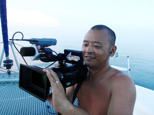 绰号小甜甜,男性,25岁,湖北人,深圳卫视随船摄制组组长,曾经历时30多天,横穿整个澳大利亚。克服了澳大利亚冬季的严寒、风餐露宿15天穿越澳洲中部荒漠区,顺利完成拍摄任务。此次扬帆万里,对他来说,又是一次具有挑战性的任务。 下图:小甜甜