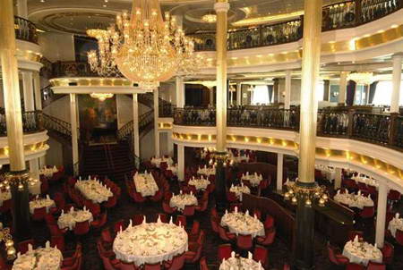 我们的行程一共7晚8天,每人都带了很多行李,本以为码头会非常嘈杂拥挤,但当我们走进登船大厅的时候,却发现办理登船手续的程序非常便捷,所有服务员都面带微笑,无论是服务态度,还是工作经验,所表现出来的素质都让人吃惊。同时有10多个窗口可以办理登船手续,非常安静,几乎不用过多的语言,只要将船票、护照和双币信用卡交给工作人员,剩下的只是稍微等待几分钟,一切就OK了。办完之后每人得到一张船卡,这张卡可以说是一张万能卡,是我在船上的身份证,无论购物、去赌场娱乐还是参加岸上自费项目,只要出示给工作人员,签个字就可以了,非常简便。同时它也是我的房卡,更重要的是在上船下船的时候,只要把卡往机器里一插,持卡人的照片以及个人信息便一目了然。 我一上船,服务员就说可以先上11层吃午饭。我迫不及待地先找到我的房间看看它的样子,房间真是不错,虽然不大但是布置得舒适温馨,还有一个大大的观海圆窗。高兴之余我想起要上楼吃饭,顺便研究一下游轮上的设施。乘电梯到达11层,来到了一个能容纳800人同时用餐的自助餐厅,在4层和5层还有个更大的主餐厅,服务人员会根据客人居住的楼层来分配用餐地点,当然这只是第一天上船时怕客人都选择同一家餐厅吃饭而指定的,其余的这些天随便去哪里吃饭都是可以的。自助餐当然不用说了,自由自在而且餐食丰富,还可以选择露天座位看着海景吹着海风用餐。我乘坐的这条游轮一共有15层,有无窗的内舱,带窗的海景舱、带阳台的阳台房及套房、豪华套房、家庭套房等,各种各样的房间应有尽有,俨然一个五星级的海上大酒店。游轮上的娱乐设施比五星级酒店还要丰富,有剧场、电影院、商业街、画廊、各种风格的酒吧,最刺激的是还有一个赌场。除此之外还有2个游泳池:一个室外的,一个室内的;4个按摩池、美容按摩水疗中心、健身房、室外篮球场、儿童戏水乐园、迷你高尔夫球场、攀岩墙等等。所有这些设施都遍布在船的每个角落,保证你在船上的任何时候都不会无事可作。 游轮上通常要用4种语言播音(英语、西班牙语、法语、意大利语),在船上每个人都是“外地人”,由于船上的标识都非常清楚,所以只要仔细察看都可以找到想要去的地方。当然游轮上有一个正规的问讯处,全天24小时有人在那里等候客人的问讯,为客人解决各种问题。有一天,我去问讯处询问关于岸上的游览项目如何选择,接待小姐是个华人面孔的亚洲人,在几句话交流后,她问我:“您是中国人吗?”我说:“是呀。”她马上用中文说:“我会讲中文!”我当时的兴奋和亲切感觉无法用语言来表达,我终于可以不使用我那蹩脚的英文了!于是使用母语畅快地跟她交谈了起来,原来她是马来西亚人,是这条船上惟一会讲中文的服务人员。当然跟她交谈之后,不仅眼下的问题得到了解决,就连这几天在船上的所有疑问都得到了圆满的解答。 在上船以前,就听人说大型游轮非常平稳,这一点我倒是有深刻的体会,但是船在航行时如此的安静是我没有想到的,就连晚上睡觉时也听不到一点声音,根本感觉不到船在航行。