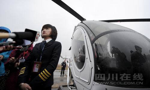 谢曦垚走出机舱接受采访 首批女子直升机飞行员安徽上岗 四川“85后”美眉首飞 “医疗救护、空中游览、城市消防、森林巡护、航空拍摄,甚至空中婚礼,或许都将留下我们的身影。”——四川美女飞行员谢曦垚 昨日11时,安徽省首架通用直升机在合肥骆岗机场进行首飞仪式。而驾驶首飞任务的飞行员是今年3月份从民航飞行学院新津分院毕业的谢曦垚。同时,她们也是全国民航系统定向培训的首批女子直升机飞行员。 首飞能见度低“85后”美女不含糊 “首飞仪式11时正式开始,由于能见度较低,我们飞行时间大概只有1个小时,但整个飞行过程都很轻松、顺利。”虽然离首飞仪式已过去了几个钟头,但是在电话那头,谢曦垚仍然抑制不住兴奋之情。 谢曦垚是一位地道的四川女孩,1987年生,来自广汉,是民航飞行学院2006届的毕业生,大二时由空乘专业转为了飞行相关专业。 谢曦垚说,自今年3月份从民航飞行学院新津分院毕业后,她与同期同校毕业的美女飞行员马洋、苏珊以及另外2名男性飞行员一起来到安徽鼎宏通用航空公司,正式走上工作岗位,接受相关培训。