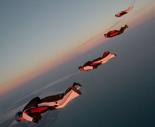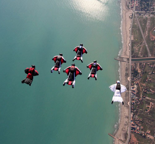 这群“蝙蝠侠”在高空摆出各种各样令人惊叹的组队造型。