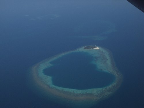 让我怪的是,他们每天都做一样的事情,甚至一天来回飞好几次,但是每个驾驶水上飞机的人都满脸的笑容,那种发自内心的笑容让人感受很深刻,自然我们每个人的心情也越发的好。第一次坐在水上飞机上,伴随着水上飞机螺旋桨发出的嗡嗡声音,看着被飞机拍打而向后飞溅的白色的水花,带着兴奋的心情我们起飞了。马累机场在我们的视野中渐渐变小,逐渐远去,我们透过水上飞机的小窗口,看着外面马尔代夫的天空,慢慢的我们飞到了一千米的高空。 从水上飞机向外望去,一个个美丽的岛屿映入我的眼帘,所有形容词一瞬间全部在我的脑海里跑的无影无踪,也许没有任何合适的词语可以形容我眼前看到的这片美丽的净土。圆的、椭圆的、狭长的、形状不一的岛屿,从窗口略过,无一不展现着当今世界上最美丽的海岛传说。突然我感觉有点晕眩,闭上眼,脑海中出现了一幅画面:我,翱翔在马尔代夫群岛的上空,飞过一个个美丽的海岛,有些我可以叫的出他们的名字,有些对我来说是陌生的,他们就像上帝造物时被散落在海中的珍珠,无时无刻不散发着美丽的光芒,呼吸着不同海岛的气息,在天空翱翔的我迷失在这片美景中,这种感觉突然让我想起在一个网站上看到的一句话: Go 马尔代夫做人间的天使……