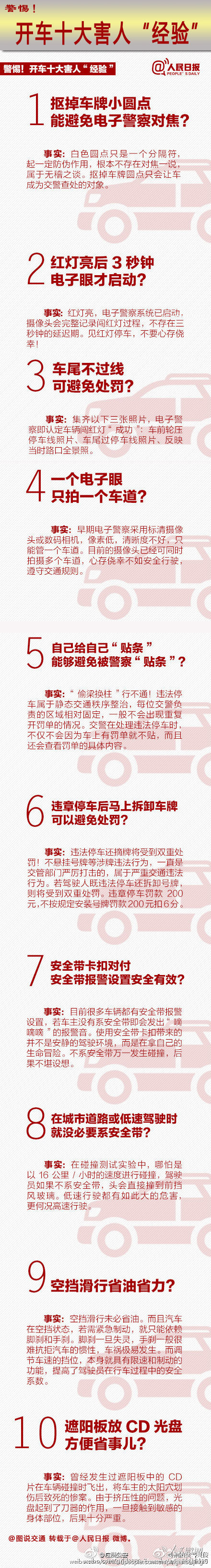 【这些驾驶“经验”都不靠谱!】[熊猫]抠掉车牌小圆点能避免电子警察对焦?红灯亮后3秒钟电子眼才启动?闯红灯时,车尾不过线可避免处罚?自己给自己“贴条”能够避免被警察“贴条”?空挡滑行省油省力?……注意,老司机的这些“经验”都![NO]不[NO]靠 [NO]谱!
