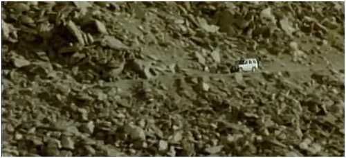 在通过一个之字形弯时,马许感觉SUV有某个部件断了,因为下坡时他听到砰的一声巨响。在下车查看后,看到后轮半轴断了。半轴替后轮提供驱动力,在半轴断掉之后,只剩前轮驱动了。 只有前轮驱动的车辆爬坡会变得异常艰难。原本轻松可上的坡,现在却十分吃力。只有当半轴断掉之后,才会非常、非常深切的理解为何法律规定只有四驱车可以进入此路。