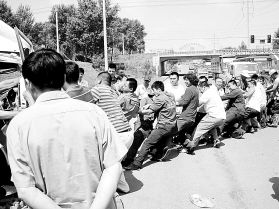 男子因车祸被困车内 20多人"拔河"拽开车门(图)