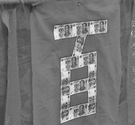 昨日,在宜宾某网络论坛上看到一篇帖子《实拍:珙县最牛“迎亲队”,100元大钞原来可以这样用!》。根据发帖者的描述,发帖者在前往宜宾市珙县的路途中,偶遇一迎亲队伍,跟传统迎亲队伍不同的是,这支队伍用百元人民币拼成了“囍”字,被网友封为“最强"囍"事”。