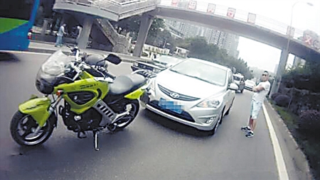 男子被溅一身泥 骑摩托逼停轿车要求道歉