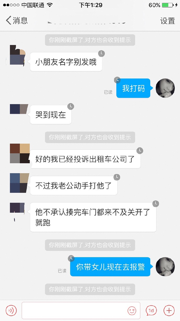 “当时瑶瑶在10点04分的时候发了几条消息,说驾驶员对她动手动脚。事发时穿的是校服,被骚扰后,她拍下司机营运证向我求助。我当时心都要吊起来了。”刘丹提供的短信记录显示,当时瑶瑶连续发了6条信息,描述遭到司机骚扰的情形,希望母亲来接自己。