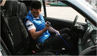 短衣襟小打扮,置身清爽的户外,即使只有几样简单的器械,一样可以练遍全身 (请注意帅哥,他可是著名的健身教练朱晓辉哟!来看他的博客 http://blog.sina.com.cn/zzxxhh) 车内进行上肢训练最为方便,只要一根弹力绳就能顺利完成,开车久了停下来,伸展一下吧。 ![]()