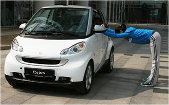 两位主角终于有了“对手戏”的机会,互相帮助,不仅可以达到运动的效果,还会有不错的心情将伴随左右。男士做支撑,女士可以放心地作些力量练习。有男士的帮助,一些高难度的动作也可以在协助下顺利完成。 虽然smart小巧的外表下竟会有这样的大肚腩已经让人惊诧,但再大的肚腩再多的动作也还只能车内缓解疲劳之用,赶快开着同样好动的smart找片空地下来疯跑一番吧。 |