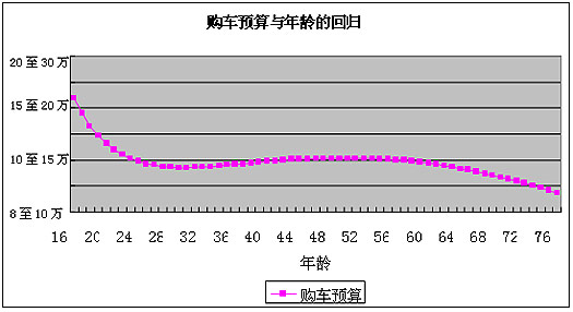 中年人购车预算较高,50岁之后,随年龄增大,购车预算降低。这一趋势与上次调查结果相似。但明显的差别在于,上次调查中,最高的购车预算集中在15至20万的价格区间,而此次数据显示,最高的购车预算集中在10至15万的价格区间。这与目前的经济形势相契合,可以说,受金融危机影响,人们的购车行为在日趋谨慎。