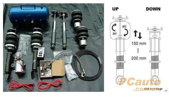 做调整,车外可以用遥控器去控制车身高低,是给专业改装VIP的车主一项非常重要的工具 1. 一组气囊式避震器