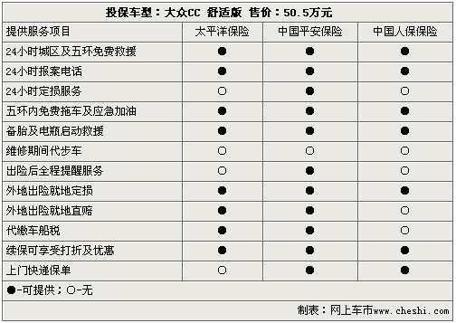 消费者在购买车辆保险获得车辆安全保障的同时,各保险公司还提供了额外的免费服务项目。对于经常在城区行驶的消费者,选择提供五环内车辆故障免费拖车以及应急送油服务的保险公司则能带来许多便利;若消费者喜欢经常外出跨省自驾游,则选择可异地定损、理赔的保险公司。各保险公司提供了丰富的附加服务,使得消费者有了更多样的选择,相较而言中国人保提供的人性化服务并不是很多。比较遗憾的是这三家保险公司在维修期间均没有为消费者提供代步车的服务。