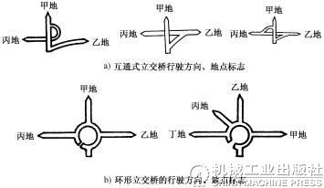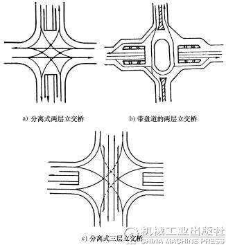 (1) 熟悉公路立交桥的形式及行车路线 公路立交桥的形式多种多样,若按相交道路之间有无连接匝道、连接匝道的类型及交通流的组织形式的不同来分,立交桥可分为分离式立交桥、完全互通式立交桥、部分互通式立交桥和环形立交桥。
