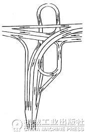 5) 除前述的四种标准的公路立交桥的类型外,还有许多结构形式特殊的公路立交桥。在这里列举部分常见特殊形式的立交桥的结构形式及车辆的正确行驶路线(图3-11~图3-14)。