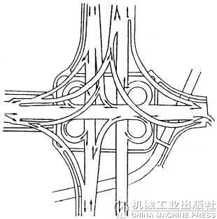 2) 完全互通式立交桥是指不同高程的相交道路之间有特设匝道的立交桥,因此转弯车辆可以通过匝道与直行车道互相沟通,从而确保各方向车流畅通无阻,互不干扰,完全消除了平面冲突点。因此,完全互通式立交桥是迄今为止最完善、也是驾驶员最无后顾之忧的一种立交形式。只要驾驶员按指定的方向行驶,就可以保证相交道路上各个方向的车辆互不干扰。