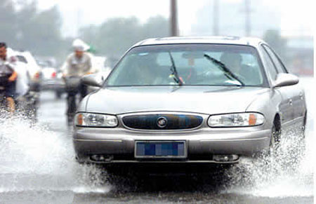 当然,选择最佳路线也很重要。一般公路设计为了排水方便都是中间高、两边低,所以涉水行车时应尽量选择靠路中间积水浅的地方行驶。如果是立交桥的话可以选择自行车道,甚至骑着路肩行驶。原因一是自行车道多照顾行人坡度起伏不会过大,这样积水自然也就少;二是骑路肩行驶可以将车底盘垫高一截,当然要确认安全,因为有些路肩设计较高反而容易磕底。