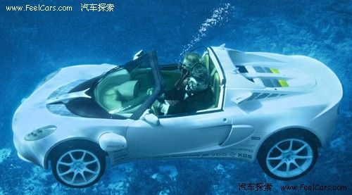 由于位置过高,在水面漂浮时喷射推进装置无法发挥作用。因此在这种状态下动力来自车尾的两个螺旋桨,驾驶员可以通过左侧的两个拉杆对其加以控制。这恐怕也是莲花爱丽丝唯一没有操控性的情况了。 不过这并不是坏事。车头劈开的水花可能会让你想起驾驶路虎涉水的经历,但回味激情驾驶显然有些不合时宜。穿行于游船之间享受日光浴才是最好的选择。 如果不喜欢这种悠闲的方式,潜入水中绝对可以给你带来前所未有的刺激。降下车窗并打开密封车门的泡沫后,水会缓缓的流入驾驶室,但很快水流就变得湍急起来,同时Squba开始下沉。