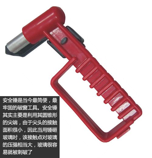但车主们一定要购买正规厂家生产的专业安全锤,像网上出售的那种多合一安全锤一般质量都不过关,危急关头根本派不上用场。另外,司机们还要把它存放在容易取到的地方,在发生车内出现火灾或汽车落入水中等紧急情况下,可以方便取出并砸碎玻璃窗门以顺利逃生。