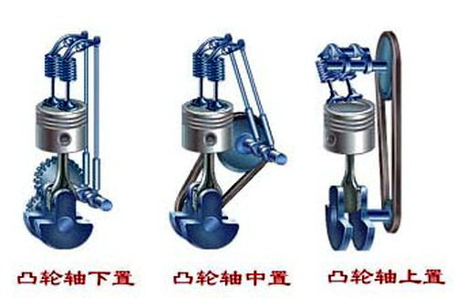 凸轮轴和气门的布置: 在以前很长的一段时间里,底置式凸轮轴在内燃机中最为常见。而现在大多数量产车的发动机配备的是顶置式凸轮轴。