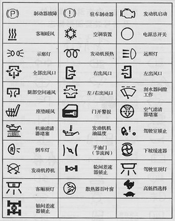 图为汽车内部常见指示图案(一)