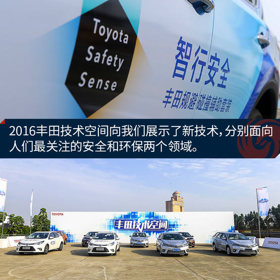 还有不到一个月,2016年就将翻篇儿,是时候对一年的表现做个总结了。对汽车企业而言,销量绝对是最重要的考核标准,总体来看,2016年的中国汽车市场,日系车呈现出明显的上升势头,尤其是处在老大位置的丰田,截止11月份,全国销量已超110万辆,相信全年销量120万辆不是事儿。虽然跟处在前两位的大众、通用还有差距,但相比丰田自己前两年也是显著增长。 说到销量增长,肯定跟产品有关,在之前一年(2015年)丰田的主要亮点是双擎技术,搭载国产双擎动力的卡罗拉和雷凌已经被越来越多的中国消费者认可,目前的销量已能完全消化产能。而在今年(2016年),丰田在中国推广的则是另外两大量产技术“Toyota Safety Sense智行安全”和“1.2T涡轮增压直喷发动机”,面向的正是人们最关注的安全和环保两个领域。 同往年一样,在丰田中国组织的“丰田技术空间”活动上,媒体可以全面了解其最新先进技术并做全面体验。 大家都安全才是最安全 “Toyota Safety Sense智行安全”简称TSS,是丰田最新的主动安全技术,包括四套系统:预碰撞安全系统(PCS)、车道偏离警示系统(LDA)、自动调节远光灯系统(AHB)、动态雷达巡航控制系统(DRCC),又称作“丰田规避碰撞辅助套装”。 虽然民间对安全的认识会有偏差,但作为了从业多年的媒体人,我还要负责任的说日本人对交通安全的认识是很全面、很极端的,日本本土的交通事故率及交通事故死亡人数都在逐年递减,在全世界范围内是最安全的表现。还拿丰田来说,它在日本的市场占有率40%,所以这也跟丰田努力开发推广安全技术取得的成果有一定关系。