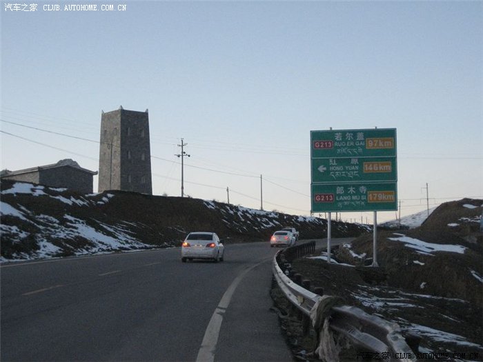 获知这一信息,我们立即拨打后车电话,对方的联通手机却无信号,紧要关头,我们彼此失去了联系。这样,LD更是焦急万分,生怕后车在不知情的情况下,向红原方向追赶我们。为了截获他们,我们立即开启双闪应急灯,一车4人穿上随身携带的所有防寒衣服,下车站在寒风中苦苦等候。大约40多分钟过去了,仍不见后车的踪影。此时,暮色已经遮盖了天边最后一线余光,过往车辆纷纷开启大灯疾驰而过。此情此景,令我等越发焦虑不安。站在这个路口,经过一阵焦急等待和利弊分析后,我们首先打消了夜赴红原的计划。但这时有两个问题使我们很纠结:一是取消夜赴红原的计划如何才能通知到他们;二是我们是返回川主寺过夜,还是前往若尔盖住宿。思前想后,联想到刚才几位车主的一再劝告,于是决定调转车头,返回更有安全感的川主寺。然而当行进不到1公里,我和LD不约而同地想到,他们去川主寺的可能性不大,最大的可能性是没有注意路牌指示,无意中直接向若尔盖方向去了。在与LD和同车的儿子侄儿商量后,我们决定干脆摸黑到若尔盖,这样还有可能在若尔盖与他们汇合,也可以为次日节约更多时间。于是不再迟疑,立马再次调转车头,迎着高原嗖嗖的夜风,直奔若尔盖而去。