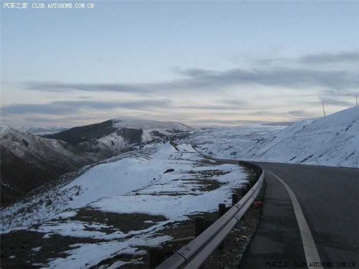 车过川主寺大约半个多小时,晚6点50分左右,海拔3000多公尺的尕力台出现在眼前。此时天色越来越暗,气温越来越低。据说此前这里下了一场大雪,远近的山峦全被皑皑的白雪覆盖。下车驻足尕力台,被我们踩在脚下的绵延峰峦似乎也掩藏了远望时的雄奇和伟岸,变幻成一幅绸缎般柔美的银白色水墨,静静地铺展在冷寂的暮色余晖中,随你遐想,任你慨叹……莫非充满革命英雄主义精神和浪漫主义情怀的毛主席那首著名的诗句:“五岭逶迤腾细浪,乌蒙磅礴走泥丸”的诗句便是由此引发不成?!