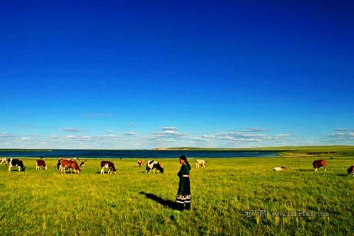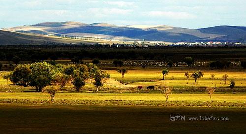 夏季牧羊 三、呼伦贝尔草原 呼伦贝尔草原位于大兴安岭西侧,东西300公里,南北200公里,面积约10万平方公里。呼伦贝尔大草原是中国目前仍保持完美(没被污染)的草原之一。 1、金帐汗部落 金帐汗蒙古部落坐落在陈巴尔虎旗境内,是呼伦贝尔境内唯一以游牧部落为景观的旅游景点,位于呼伦贝尔草原上号称“北疆第一曲水”的莫尔格勒河畔,是呼伦贝尔三大草原旅游点中景色最美的一个,离海拉尔约40分钟车程。这里是中外驰名的天然牧场,也是“天苍苍,野茫茫,风吹草低见牛羊”的呼伦贝尔草原腹地。12世纪末至13世纪初,一代天骄成吉思汗曾在这里秣马厉兵,与各部落争雄,最终占领了呼伦贝尔草原。金帐汗部落景点的布局,就是当年成吉思汗行帐的缩影和再现。 金帐汗蒙古部落距海拉尔市区38公里,可乘去往拉布大林方向的班,告诉司机在“金帐汗”下车,车会停在公路边,下车再往西走800米左右就是金帐汗。也可乘出租车前往。 2、呼和诺尔 呼和诺尔草原在呼伦贝尔盟陈巴尔虎旗,坐落在呼和诺尔湖畔的高岗上,距海拉尔市约54公里,是呼伦贝尔草原的一部分,也是当地最具代表性的草原民俗旅游点。乘海拉尔去往满洲里方向的长途汽车,在301国道1340公里里程碑处下车,向北走500米即是。也可乘出租车前往,人多的话租车去陈旗或进草原是很好的选择。海拉尔有到各旗的车,到陈旗的尤其多,每20分钟就有一趟。 草原内有许多大大小小的河流湖泊,其中呼和诺尔湖景色最佳,湖面四周绿草如茵,湖水清澈洁净,犹如一颗闪亮的明珠,湖边不时有野生的白鹭飞起,岸边不时有只会往前而不会拐弯的青蛙跳起跳落。夏季草原上水草丰美,牛羊遍野,蓝天白云下,景色异常优美。在草原上,你可以住在蒙古包中,真正体味一下蒙古民族特有的风情。 3、巴彦胡硕敖包山 呼伦贝尔境内另外一个草原旅游点是巴彦胡硕敖包山旅游点,隶属鄂温克自治旗,位于敖包山南部伊敏河畔的岗阜上,距海拉尔39公里。 建议租车从海拉尔到鄂温克旗的白音呼硕草原,毕竟,风景都在路上。全程只需20分钟,出租车费用在50元左右。 4、说明 在旅游点消费相对于呼伦贝尔境内的其他消费来说是比较贵的;去的时候多带点衣物和防蚊用品,草原上早晚温差很大,蚊子种类也很多,有一种毒蚊子非常厉害,最好作些准备。