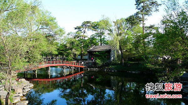 中线:下万壑松风蹬道至如意湖、下湖中间的拱桥,是中线的起点。经芝径云堤,到采菱渡,如意洲,到达中线结景青莲岛(烟雨楼)。