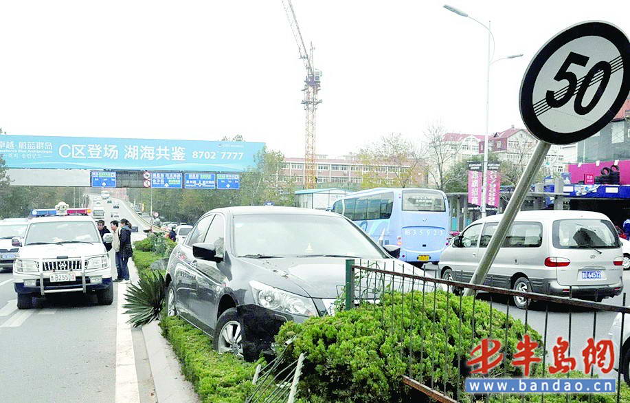 11月16日下午4时许,在山东路雁山立交桥附近,一辆黑色的雅阁轿车一头撞上路中央的隔离栏,撞出十多米后才停了下来。而据目击者称,雅阁司机下车时竟然还拿着酒瓶在喝。目前,司机因涉嫌酒后驾车已被警方带走,而事故原因仍在进一步调查之中。 “一辆雅阁轿车冲进了路中央的绿化带上,破坏了十多米长的绿化带,把隔离栏都给撞断了!”11月16日下午4时10分,记者接到市民反映,称山东路雁山立交桥附近发生一起车祸。记者闻讯赶到现场,此时司机已经被警方带到警车内。记者在现场看到,一辆黑色的雅阁轿车骑在路中央的绿化带上,车头撞在一根标有“50”的限速杆上,雅阁车头受损,十多米长的绿化带被车轧过,连隔离栏也被撞散。 据一位目击者称,事发时雅阁轿车沿着山东路由北向南行驶,“这辆车突然失控,一头就撞到了路中央的隔离栏上”,这位目击者称,雅阁在绿化带上跑出十多米,直到撞上限速杆才停了下来。“雅阁车司机下来以后,手里竟然还拿着一个酒瓶子”,据目击者王先生称,当时很多围观群众都在一旁议论这个酒司机,“那个司机一看不乐意了,接着拿起酒瓶子就喝了起来”,王先生回想起当时的情况来也是哭笑不得。透过警车玻璃,记者看到,司机的袖子上还带着斑斑血迹。 “这名司机确实喝酒了,现在还在警车内胡闹。”采访时一名民警告诉记者,至于到底喝了多少酒,要进行酒精测试才能得知。目前,雅阁车司机因涉嫌酒驾已被警方带走,事故原因仍在进一步调查中 |