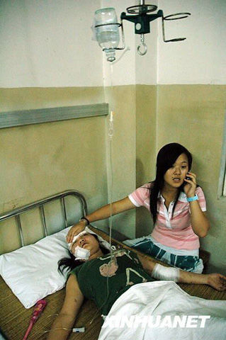 ![]() 9月4日晚,一名女孩在医院向一位伤者的家人通报车祸情况。 |