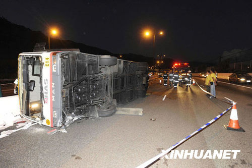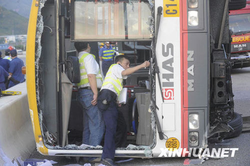 香港机场一辆员工巴士翻侧 3死24伤