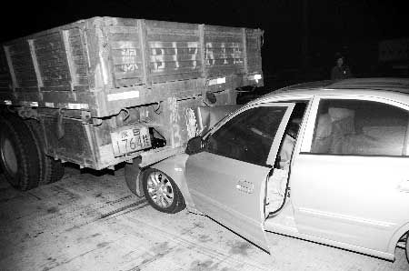 轿车钻货车下被拖10公里 车主感慨欲哭无泪(图)