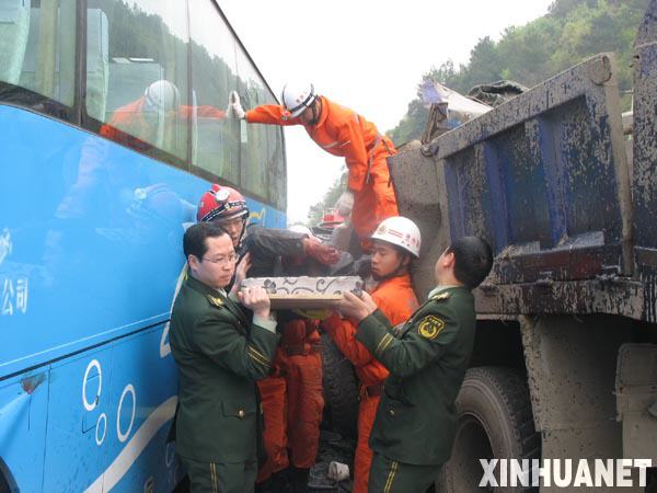2009年4月6日 贵州贵毕公路发生一起4车相撞事故2人死亡  新华社发(杨晓 摄)