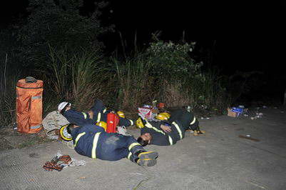 “山谷太险,晚上根本无法搜救,计划今早5点再次下山救援。”一位指挥救援的当地官员说。5日凌晨5时,警灯开始在山间不停闪烁,睡在地上的救援队伍兵分多路,开始下山寻找失踪人员并清理现场。谷底时不时传出救援人员喊话的回响“再下来两个人,带担架。”,“上面的人,快拉绳。”