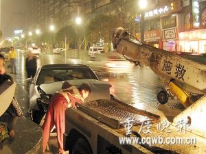 ![]() 工作人员正在拖离事故尼桑跑车 重庆晚报3月1日报道 前日晚,江北欧式一条街,一辆价值60万元的尼桑豪华跑车,撞上了路灯电杆,车头被撞得四分五裂。事后,驾驶员迟迟不露面,站在不远处旁观,在交警的多次盘问下才站了出来。 目击者刘先生介绍,9时50分左右,当事尼桑跑车从北城天街方向飞驰着上行,驶向江北欧式一条街。在欧式一条街中段,尼桑失控,撞向路边的路灯电杆。“砰”的一声响后,电杆“巍然不倒”,尼桑车却来了个180度的大转弯。当晚10时10分左右,记者在现场看到,这辆车牌号为渝AE3183的尼桑跑车车头被撞得四分五裂,路面上散落着车灯,铁皮等碎片。目击者刘先生说,事发后,车上两人毫发无损,但下车后不知去向。 10时20分左右,交警赶到现场,并叫来拖车。拖车师傅告诉记者,事故尼桑车跑车,目前新车市场价在60万左右。 “驾驶员呢?”交警大声询问,但无人回应。 无奈之下,交警只得对目击群众挨个盘问,以确定驾驶员的去向。10分钟后,经交警多次盘问,事故现场附近有两人终于站了出来。据称,两人避嫌,一是担心遭人指责技术差,同时暂时回避也可避免露富。随后,两人被交警带走接受调查。 (本文来源:重庆晚报 作者:夏祥洲) |