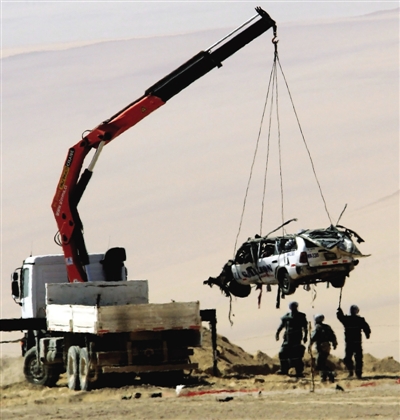 5月26日,秘鲁军方在处理出租车被炸现场。 智利官员26日证实,一辆秘鲁出租车25日晚行驶至智利与秘鲁边境地区时触发地雷,至少一人在爆炸中死亡。 智利军方在一份声明中说,惨剧发生在智利与秘鲁北部边界附近。按智利官员的说法,出租车当晚搭载至少两人,司机把车驶离干道,试图躲避边境检查,却闯入雷区。 “他们没有意识到驶入一片雷区,”事发地附近边境哨卡的一名警官说,“其中一人在爆炸中死亡。” 军方在声明中说,事发区域有警示标识,排雷专家26日为警方开辟道路,以便后者赴现场调查。 智利前军政府领导人奥古斯托·皮诺切特当政时期在智利与秘鲁、智利与玻利维亚边境埋设数以千计针对单兵和坦克的地雷。法新社报道,排雷行动2002年启动,迄今清理地雷1.4万枚。 |