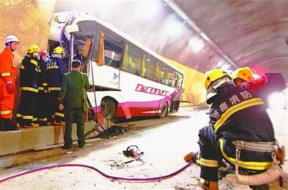 消防队员在营救车内被困乘客。 11月21日讯今天中午12点10分左右,济青高速南线蟠龙山隧道内,一辆满载乘客从莱芜开往济南的客车撞上了隧道壁,车身受损严重。至记者发稿时,造成4人身亡,另有20多名乘客不同程度受伤。 下午1点30分左右,记者赶到事发现场,消防队员、交警、高速公路路政人员等正在紧急施救。记者看到,大客车头部撞烂后严重变形,驾驶员仍被卡在座位处,身子趴在方向盘上,其右侧一人侧卧,也被卡住。营救人员说,包括驾驶员,车厢内有4人被困。 多名消防队员使用液压扩张机等工具,撑、撬车厢变形部位,但这几人被死死卡住,一时无法脱困。大型吊车等救援设备早已到位,但无法投入使用。为拯救被困人员生命,消防队员只能一点点地撬开车厢变形部位,以防被困人员二次受伤。下午2点40分,一男子被救出,急救车马上将他送往济南市第三人民医院。2点50分,又一男子被救出,营救人员称他已身亡。3点50分左右司机被救出,约10分钟后,被卡在其右侧的人员也被救出。营救人员称,两人的呼吸心跳已停止。 记者了解到,客车载有近30人。来自江苏的石先生说:“事发前,司机曾长时间和他身右侧的看上去像是乘务员的人交谈,于是,我戴上耳机听音乐。经过此处隧道时,客车前方有一辆大货车,我感觉客车像要超车,客车撞上隧道壁前,车头与大货车的车尾好像发生了碰撞,然后不知怎么回事,客车撞上了右侧的隧道壁。” |