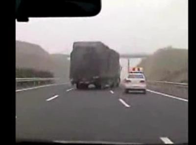 货车高速路上晃点警车 7分钟无法被超越(视频)